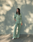 Rovně střižené rukávy mají volnější, ležérní charakter a umožňují praktické ohrnutí a zapnutí páskem, což působí uvolněně, ale stále upraveně.