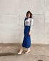 Sukně je ušitá z kvalitního bavlněného denimu s nižší gramáží, což zaručuje pohodlí a volnost pohybu. Na výběr je ve čtyřech různých odstínech džínoviny od světlé až po černou.