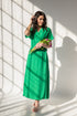 Sukně v délce téměř ke kotníkům je v pase lehce nařasená, což dodává celému střihu vzdušnost, pohodlí a krásný pohyb při chůzi. Celkově střih krásně opticky prodlužuje postavu a to i díky zavinování a výstřihu do "V".