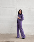 Ušité jsou z jemného bavlněného manšestru v dokonalé lila barvě, který nejen skvěle vypadá díky své typické struktuře, ale zároveň je příjemný na dotek, měkký a hřejivý – ideální nejen pro chladnější dny. Manšestr navíc přináší do outfitu jemnou texturu a uvolněný, ale sofistikovaný vzhled.