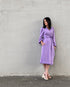 Střih šatů je navržen tak, aby lichotil každé postavě. Čistý véčkový výstřih a zavinovací střih zvýrazňují ženské křivky, zatímco širší vázačka v pase vytvaruje krásnou siluetu přesýpacích hodin. Dlouhé jemně nařasené rukávy, které se u zápěstí rozšiřují, dodávají šatům jemnost a noblesu. Pružné zakončení rukávů navíc umožňuje variabilitu – můžete je vyhrnout a přizpůsobit stylu i náladě.
